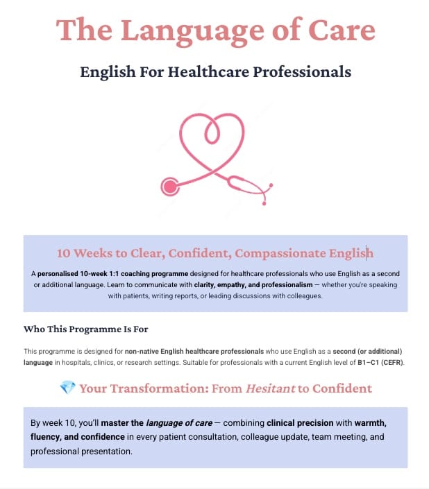 By week 10, you'll master the language of care, combining clinical precision with warmth, empathy, fluency, and confidence in every patient consultation, colleague update, team meeting, and professional presentation.
